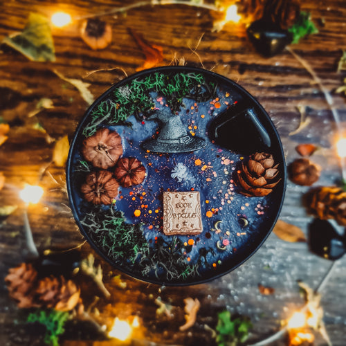 SEASON OF THE WITCH | CRYSTAL & DRIED FLOWERS INFUSED SPELL CANDLE