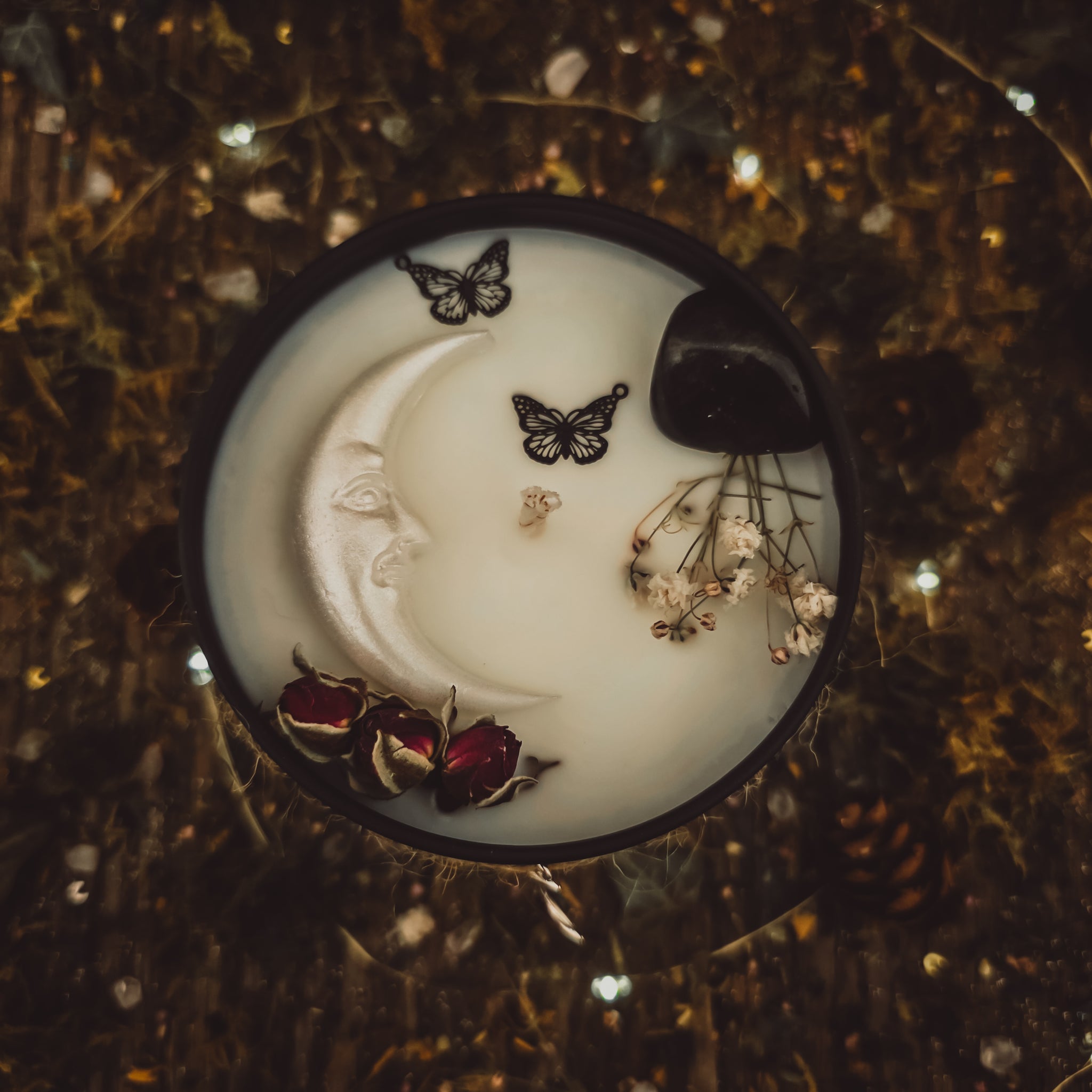 ✦ Warning: It is strongly advised that you remove crystals, dried flowers & anything else that could potentially catch fire before lighting candle. Never leave a lit candle unattended. Keep out of the reach of children & pets. Do not burn for longer than 3 hours at a time & always make sure you are burning on a heatproof, non-flammable surface away from any windows or hazards. Trim wicks to about 4mm before lighting. Always extinguish the candle.